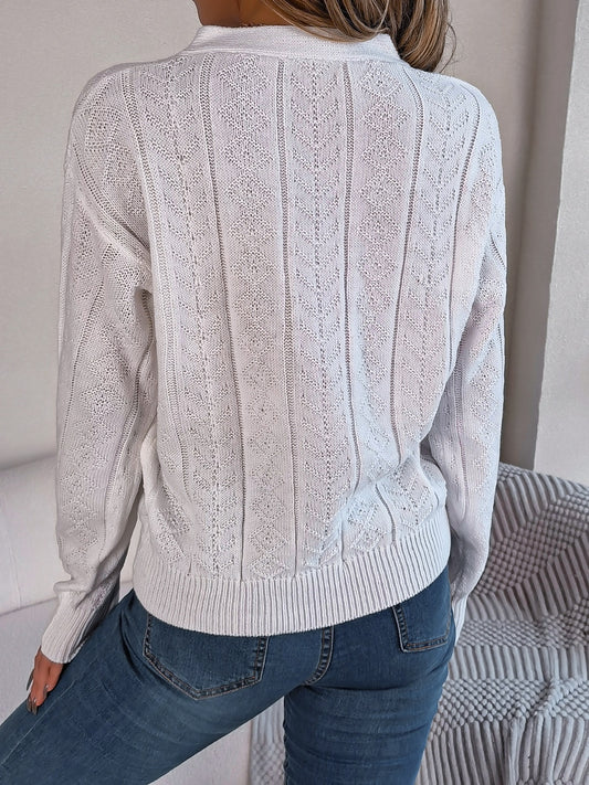 Decorative Button Striped Round Neck Long Sleeve T-Shirt